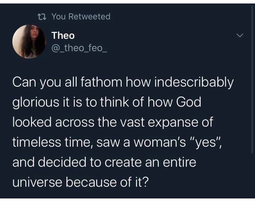 I like this reminder for a variety of reasons (not least my own particular “pro-life” leanings that I seldom talk about; the New Wave Feminists are probably the closest articulation to my convictions on this subject, if you must know). What a powerful notion, that God dwelt in the womb of a woman for nine months and some change. This is even more theologically rich when we consider the traditional Jewish belief that a fetus is not its own life while still in the womb, meaning that Mary herself (for a time) actively participated in the Incarnation of God.