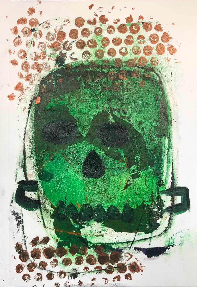 After speed-running all the mistakes you can possibly make with gel plates over the course of a day, I melted the gelatin down and started over. Ended up with two smaller plates, and am starting to get a better feel for how it works.