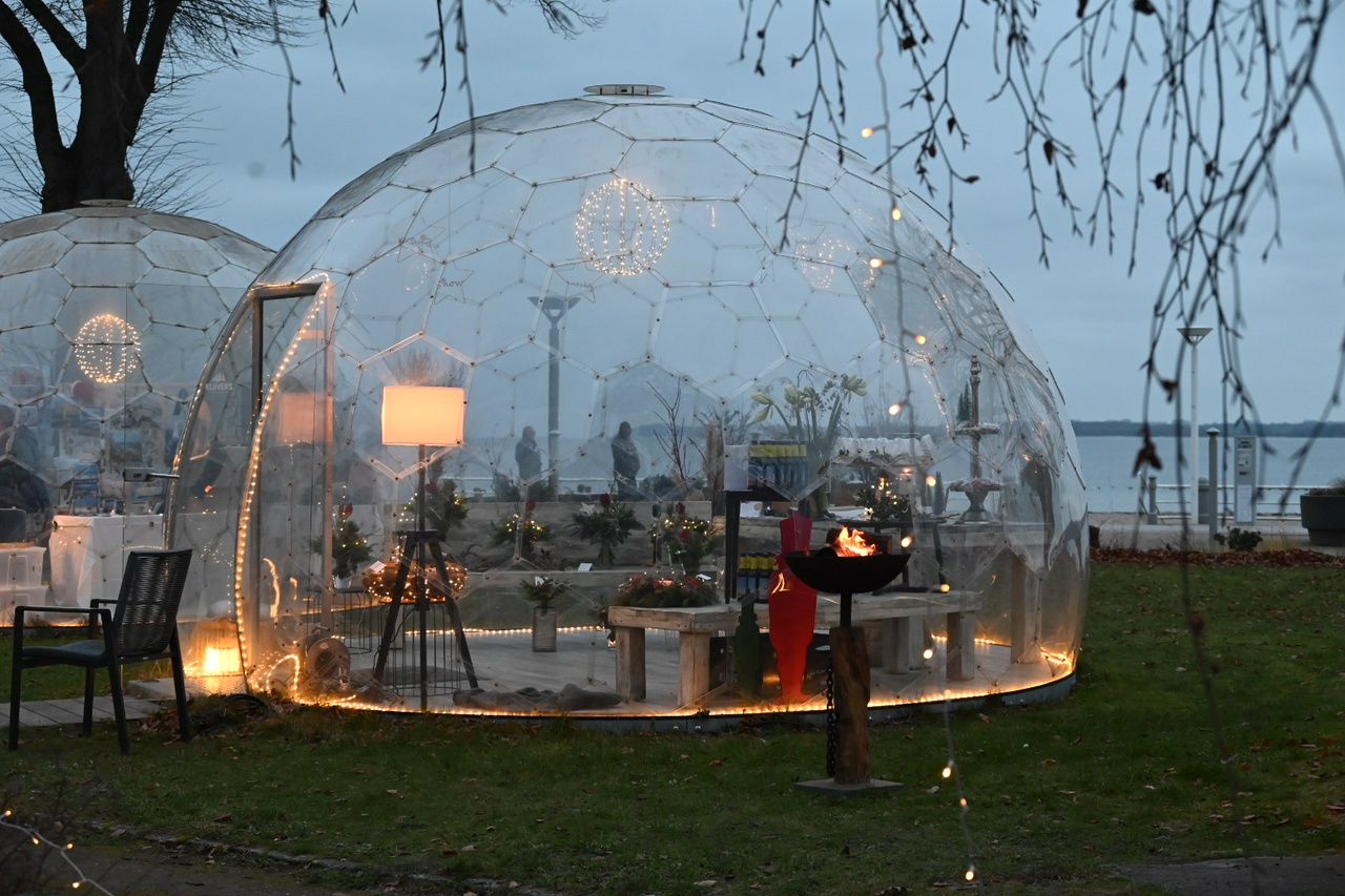 Glühend leuchten die Feuerstellen in die kühle Dämmerung,