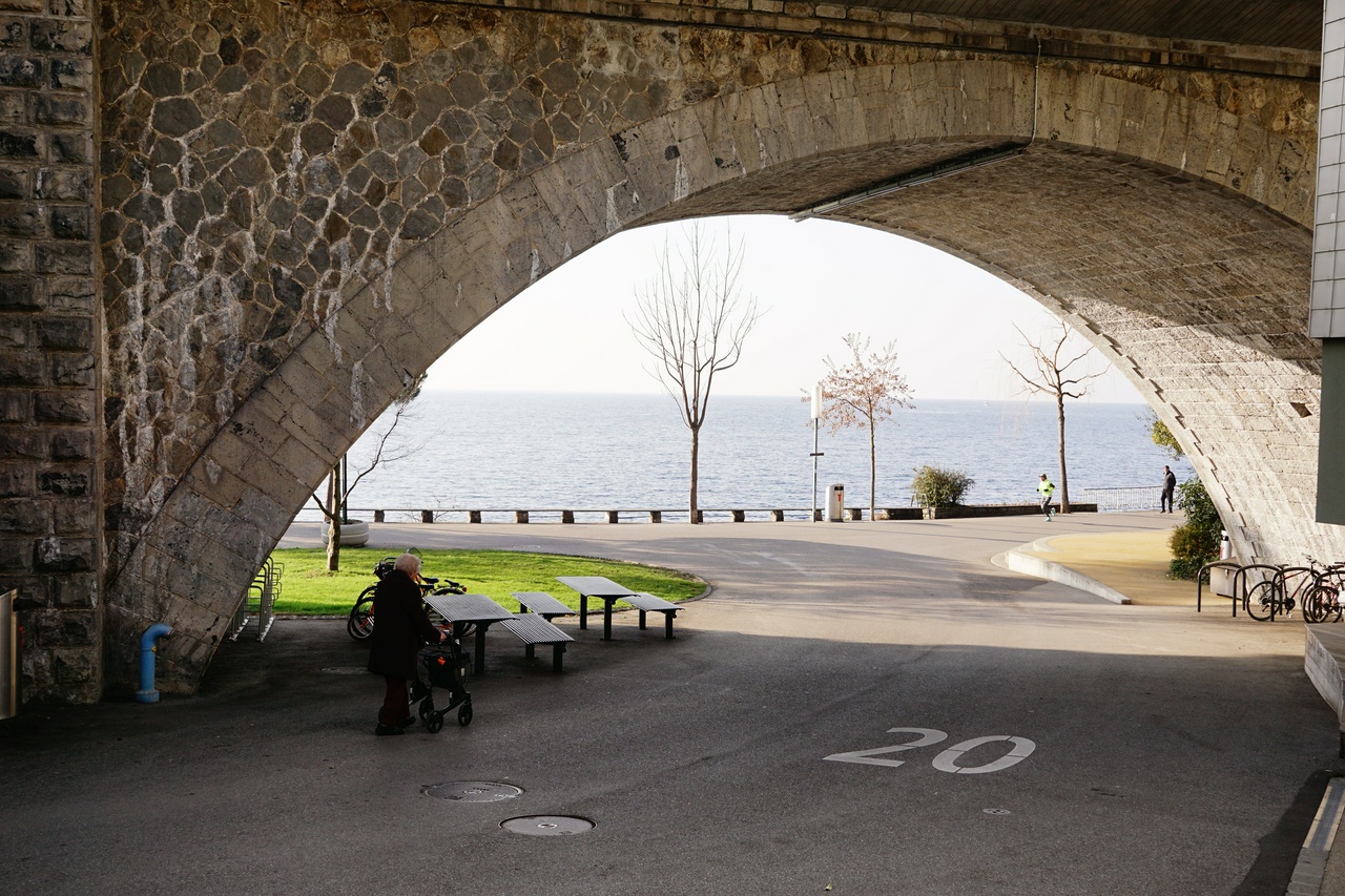 Pas de rue commerçante ordinaire, puisque c'est dimanche, mais le bord de quai à Montreux, du côté de Territet, que nous avons parcouru dans les deux sens pour cette flânerie photographique inspirée par Daid Moriyama. Sans prétention.