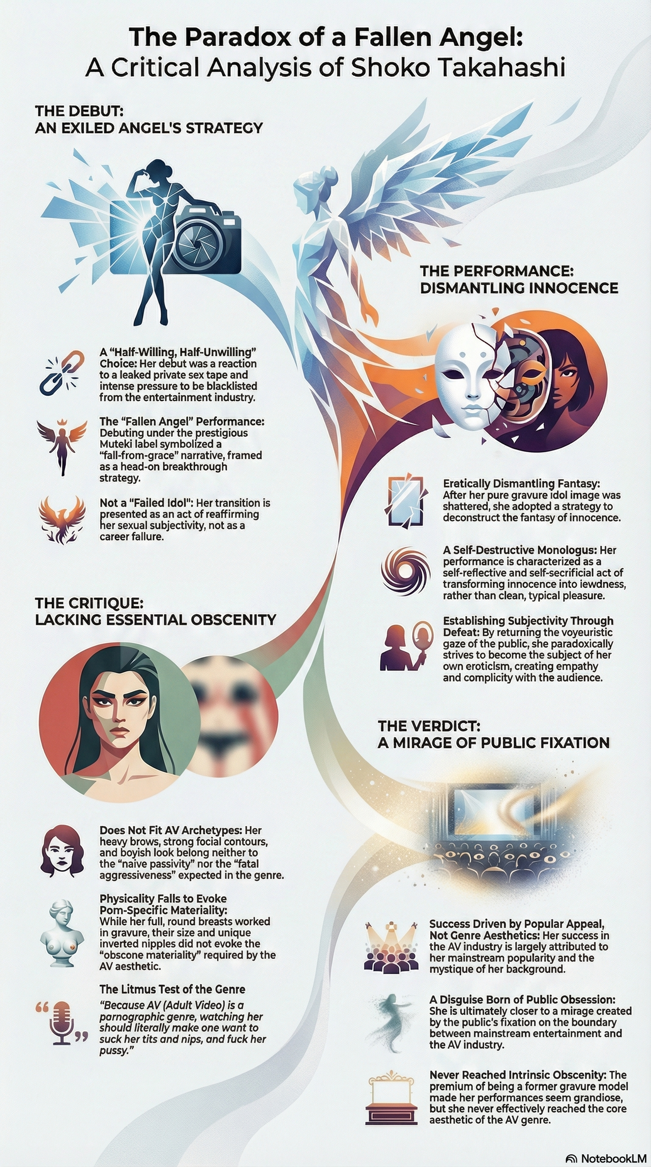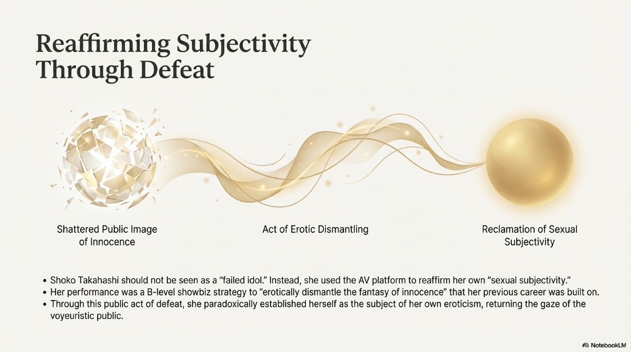 Shoko Takahashi is not simply someone who “really, really wanted to do AV.” After her private sex tape was leaked and she came under intense pressure to be blacklisted from the entertainment industry, she chose to debut in AV—half willingly, half unwillingly. Debuting under the Muteki label itself symbolizes the fall-from-grace performance of an exiled angel—a kind of head-on breakthrough strategy. …