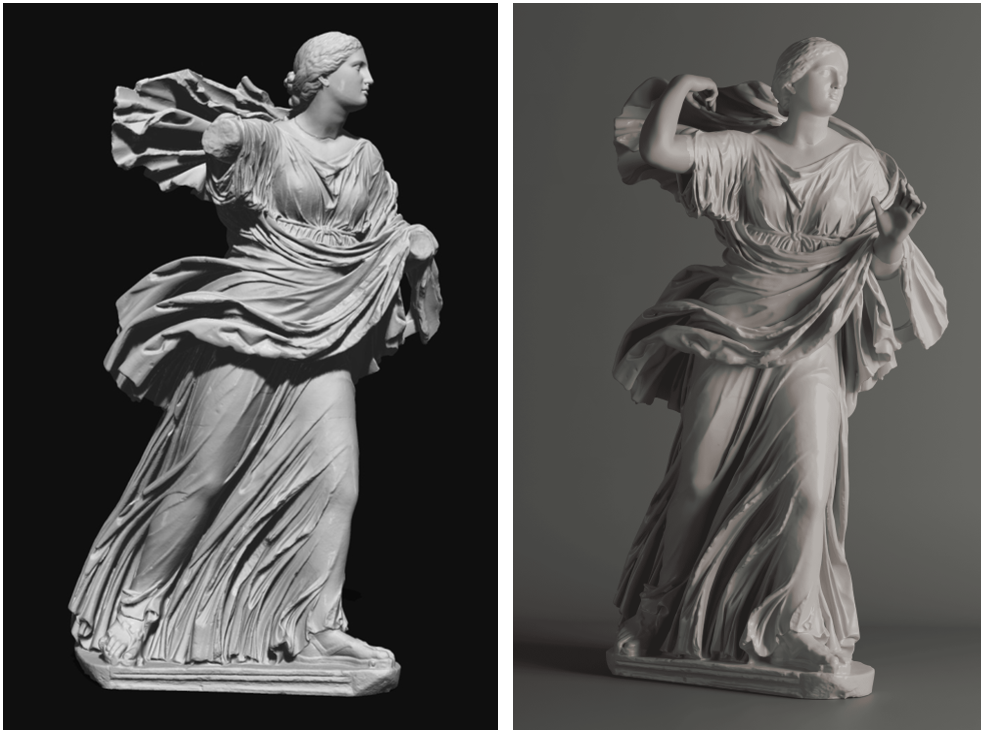 Following the reconstruction of the hands, the remaining missing parts (including the right little toe and some broken sections of the drapery) were similarly reconstructed one by one.