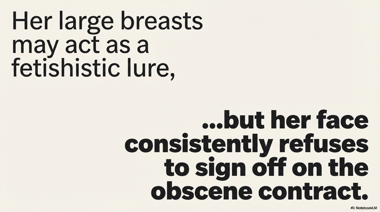 Yuzu Ogura presents a highly unrealistic figure in terms of bodily proportions. Her limbs are slender, giving her an overall girlish silhouette, but her breasts are exceptionally large, creating a somewhat deformed shape that evokes a cartoon character, making her attractive. …