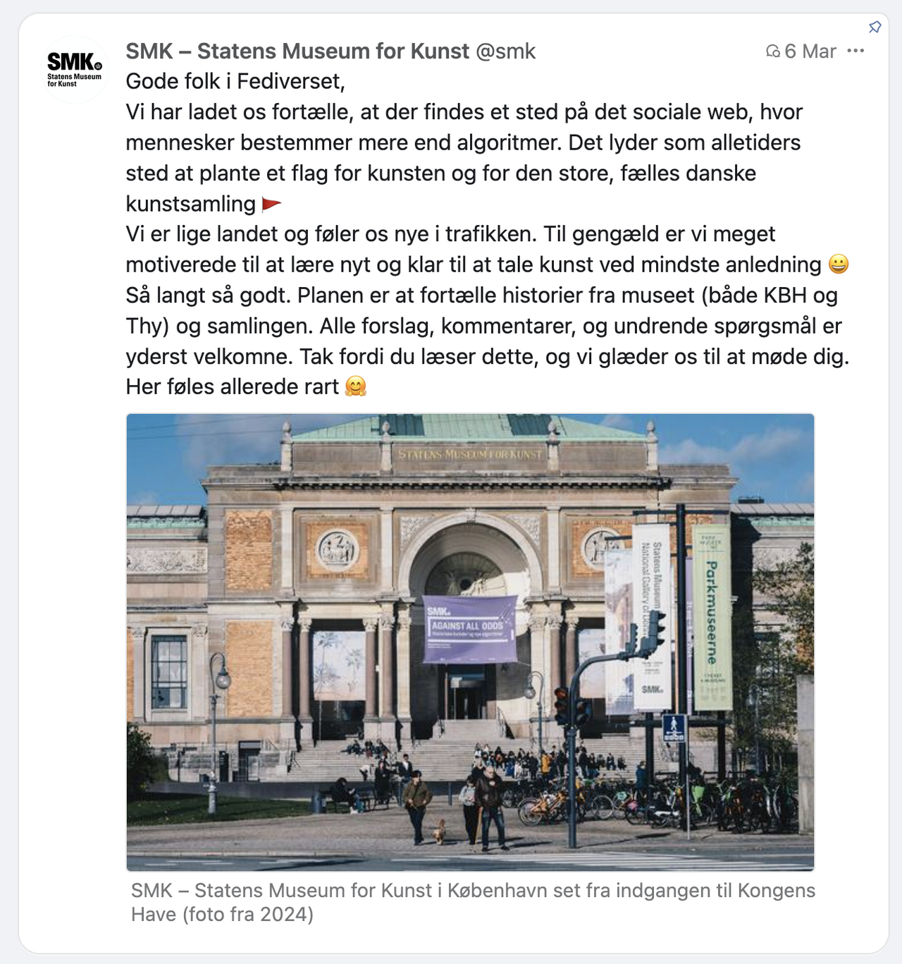 OK, maybe not phonetically. But for a museum dedicated to open access, a decentralised, non-algorithmic social media platform seems an obvious place to make ourselves available and claim a space for the national Danish art collection.